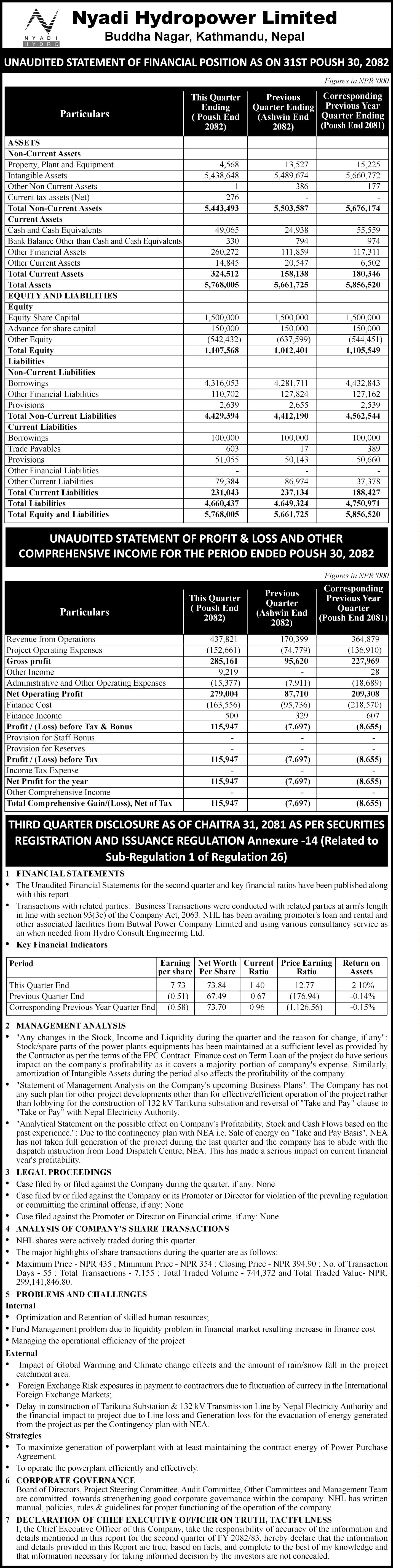 Second Quarter Unaudited Financial Statement FY 2082/083 |